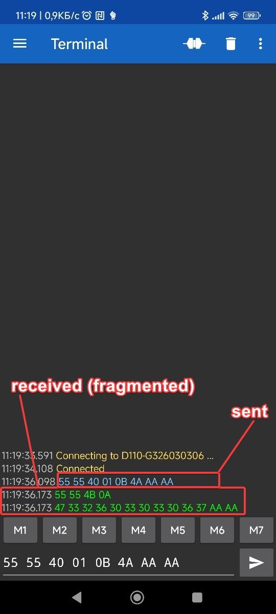 For example, packet 5555d9091f90044c000001000016aaaa can be received as 5555d9091f90044c000001000016 aaaa.